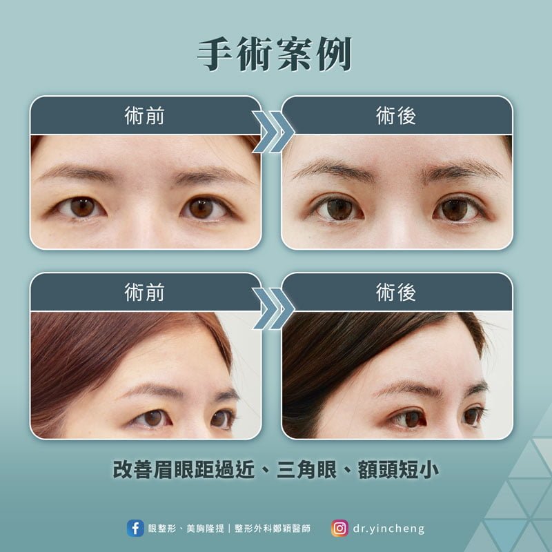 • 老化造成眼皮、眉毛下垂,或是天生眉眼距離過近,形成「眉壓眼」的兇相,或是難以睜開眼睛