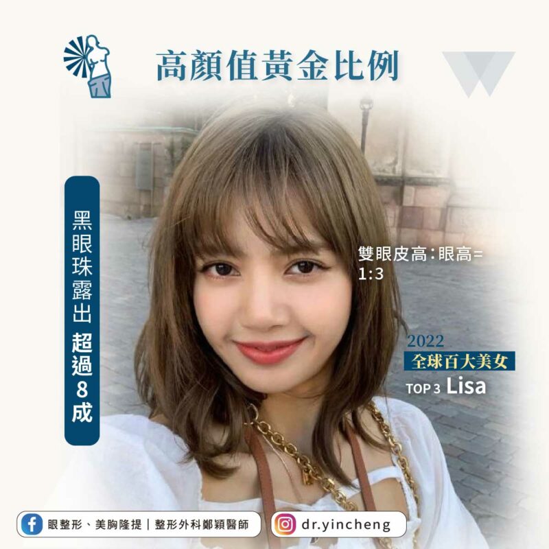 4. 雙眼皮高度的黃金比例:張眼時雙眼皮的高度與眼睛的高度約為1:3是黃金比例,且黑眼球露出至少超過8成會讓臉部的視覺重點眼睛看起來更深邃有神