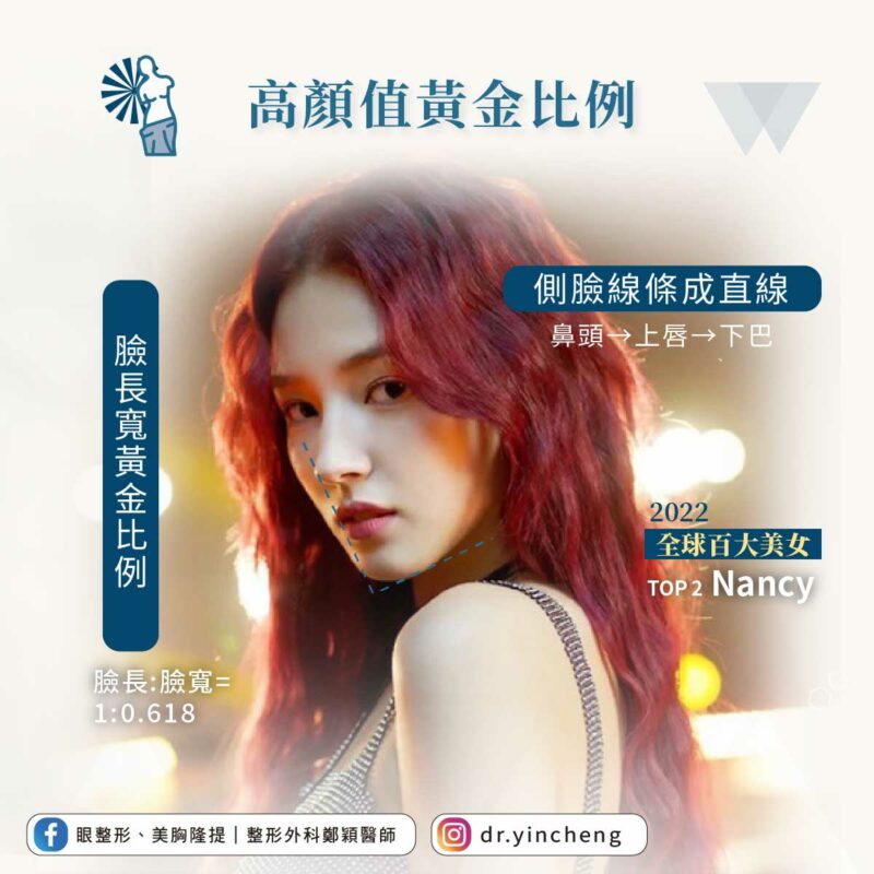 2. 長寬黃金比例:臉長與臉寬的比例若能接近1比0.618,是目前公認的黃金比例