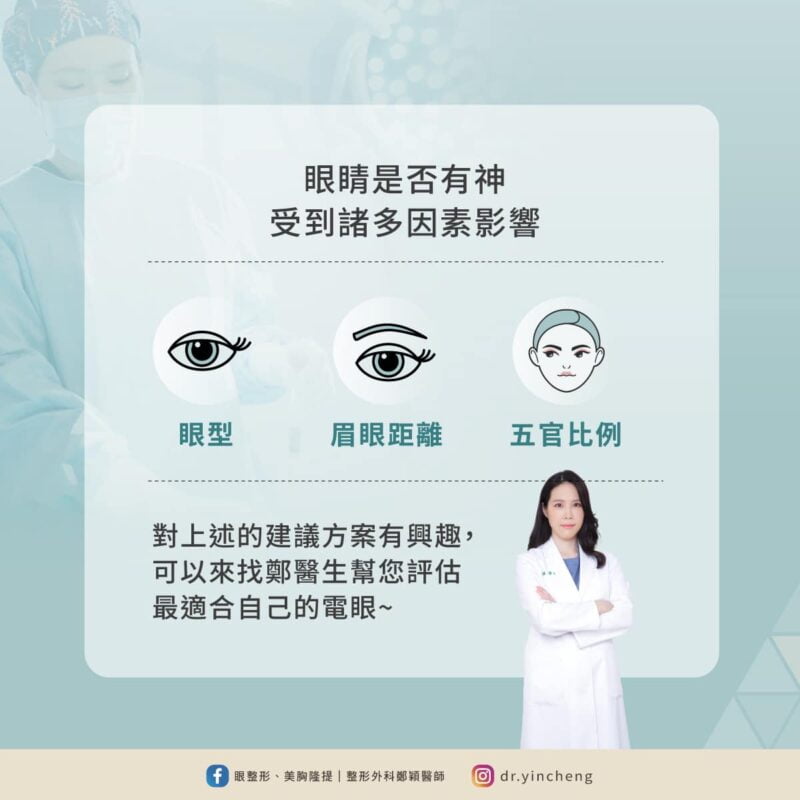 眼睛是否有神,主要是受到而是受到天生的眼型 眉眼距離整體五官比例等諸多因素影響。所以眼鏡族可別將雙眼無神的罪名掛在眼鏡上了。對上面的建議方案有興趣,可以來找鄭醫生聊聊喔~~