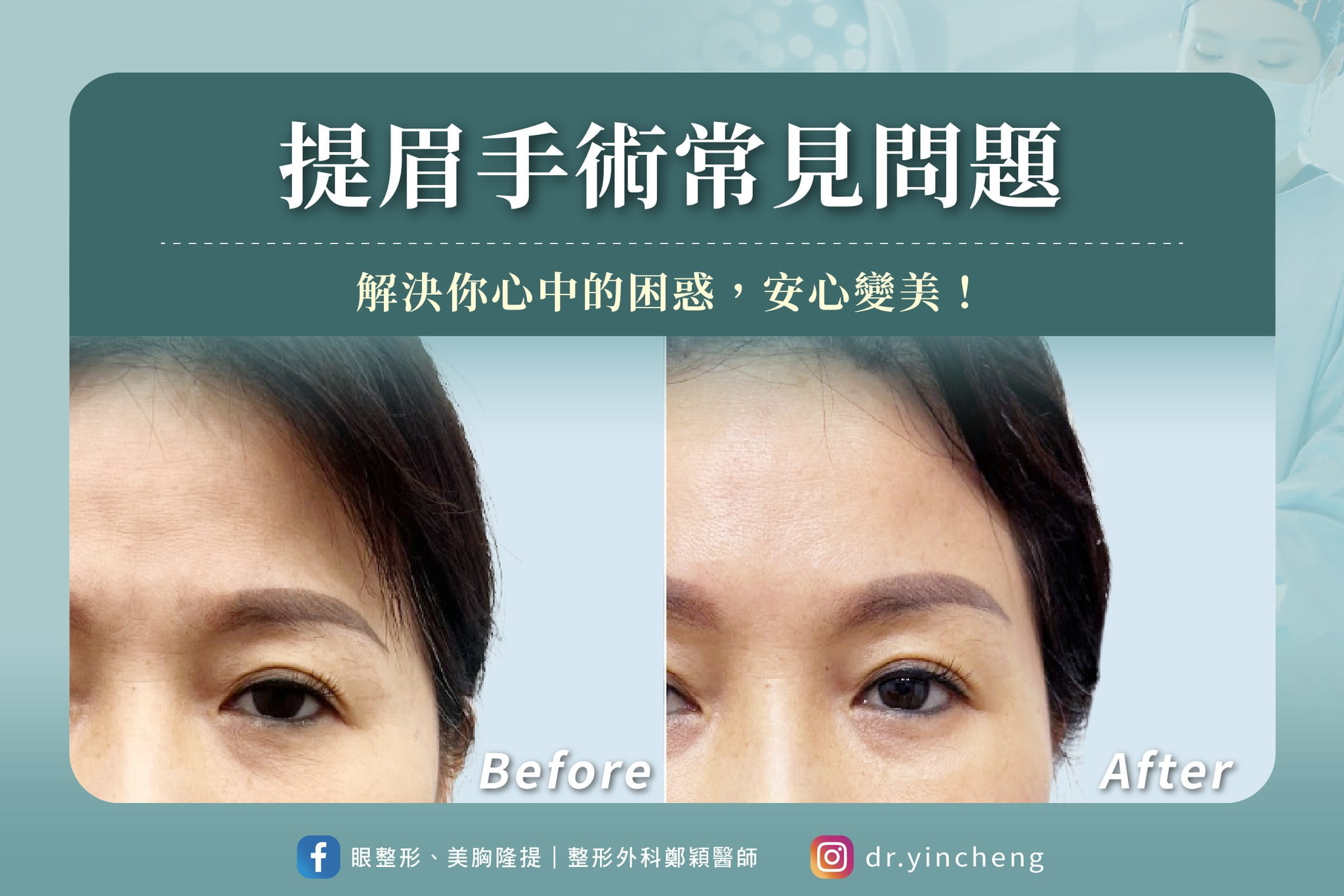 有些個案聽聞 提眉手術 可以不留痕跡地回春、眼神更加靈動,覺得CP值很高,便興致昂昂地前來諮詢。然而,鄭醫師發現有些人還是對提眉手術不太熟悉,不是抱持超乎的期待,就是感到困惑。以下就來解答有關提眉手術常見的3個問題幫助大家建立基本概念,並選擇適合自己的變美方案!