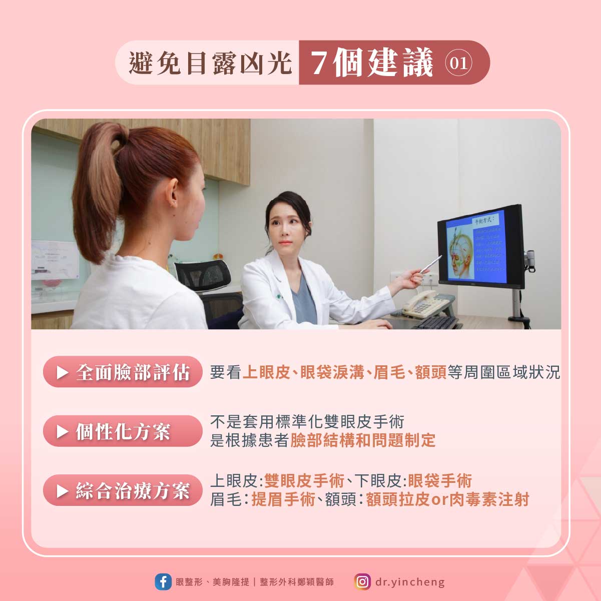 ▶全面評估:在考慮眼部整形手術時,一定要進行全面的面部評估。不僅要看上眼皮,還要考慮下眼皮、眉毛、額頭等周圍區域的狀況。